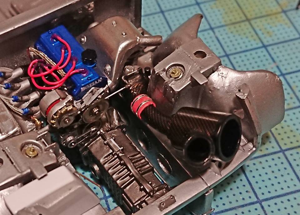 タービンの入り口には、ブローオフさせる機能なのか、プーリー類の陰からリンケージされてなにやら動く機構があり、微妙に見えるのでそれっぽく作っておきます。