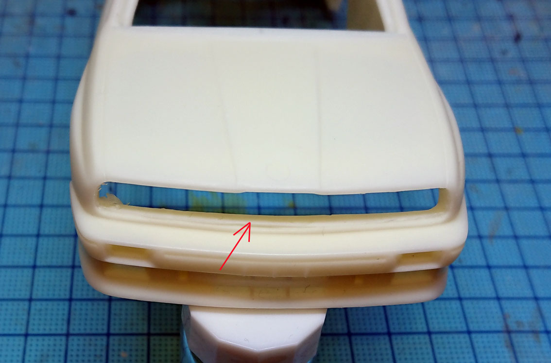 あと切り落としたフロントバルクヘッドはグリルまでスカスカになりますので,気になる方はプラ板でふさいでおきましょう。